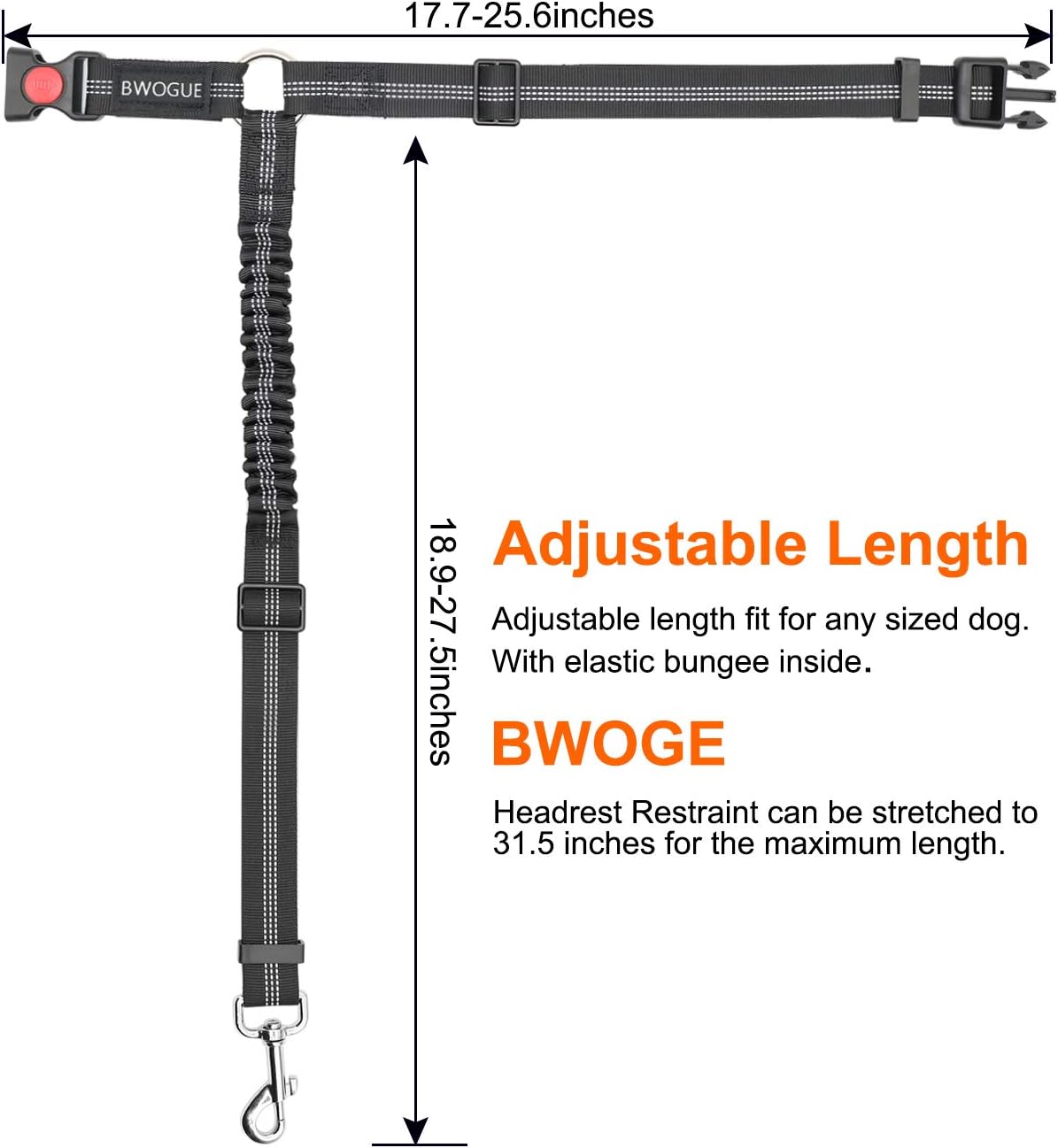Travel safely with your dog using these crash-tested car safety devices. Fully-padded vest with breathable liner provides superior comfort and safety. The Bwogue Headrest Restraint is adjustable between 18-30 inchesYou can easy to adjust the dog leash to the suitable length to keep your pet in a safety state.